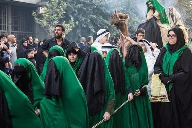 Lângă marele bazar se pune în scenă momentul în care Hussein, nepotul lui Mahomed, ajunge în tabăra de la Karbala pentru a-și pregăti înfruntarea cu tiranul Yazid. Avem toate personajele în fața ochilor: bătrâni pe cămile, femei care ocrotesc copii, bărbați în putere pe cai. Se cântă, se recită, se dansează cu niște care rituale pe umeri.